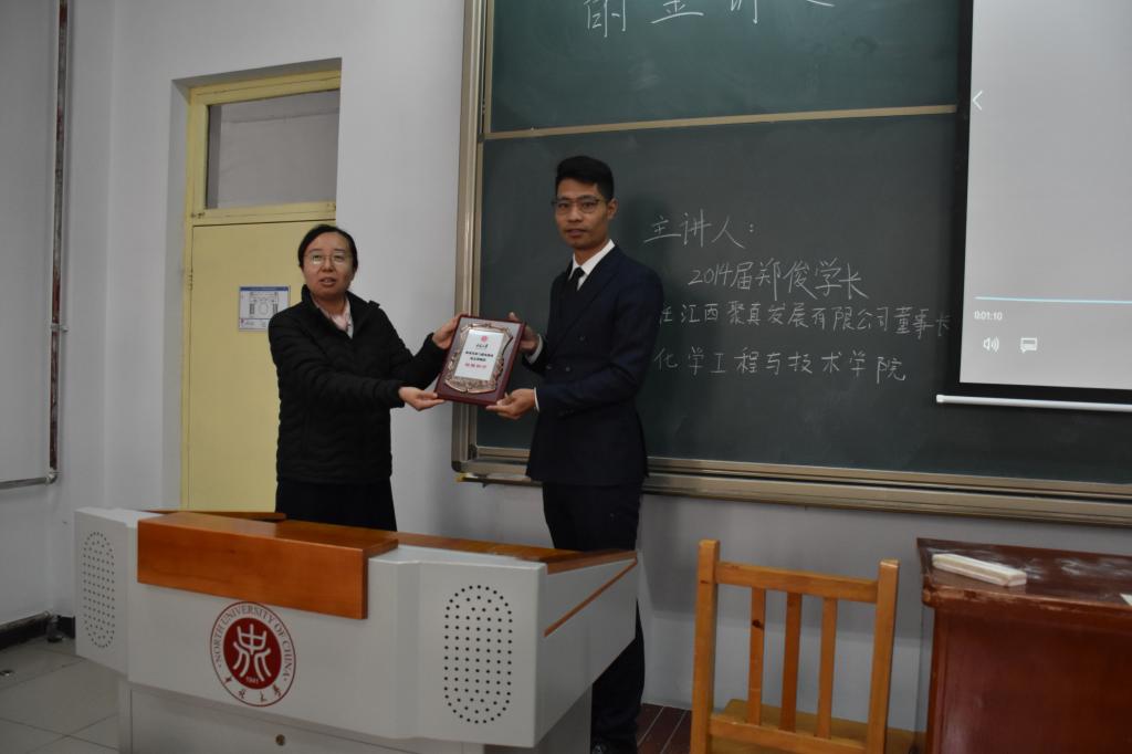 本次讲座,赵老师代表学院聘任郑俊为我院“职业发展与就业指导校友讲师团-特聘讲师”,希望继续为在校的学弟学妹们提供就业指导与帮助。
