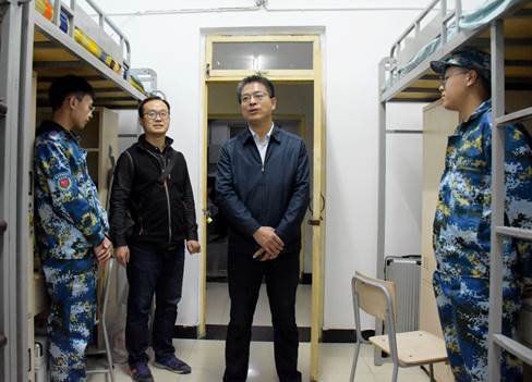 每走进一间宿舍,老师们和蔼的笑容使同学们倍感温暖、不再拘谨。潘晋孝副校长代表学校对新生表示热烈的欢迎,表明高考已成过往,大学是人生的重要阶段,珍惜当下,好好学习,为自己的人生做好规划,打好基础以获得更好的发展。鼓励新生以全新的面貌迎接自由广博、多姿多彩的大学校园生活,以此为基点扬帆起航、再铸辉煌。领导们与新生亲切交谈,详细了解同学们的住宿环境、基本配置以及学习、生活相关情况等,听取大家的意见和建议。在和谐温馨的氛围中,老师们不忘叮嘱大家平时注意防盗以及安全用电等问题。