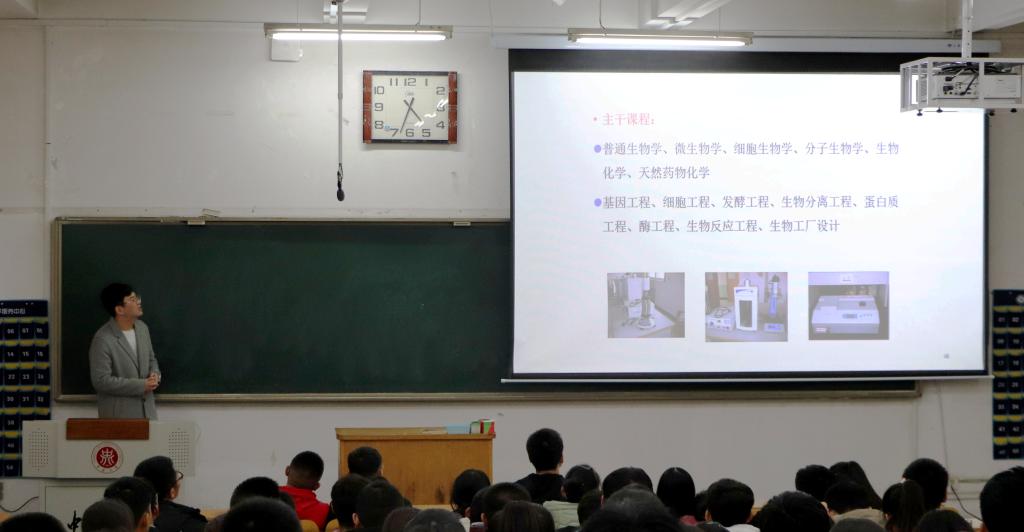 讲座开始,李裕老师从培养方案说起,要求学生在大学四年里刻苦钻研、勇于创新;崔建兰老师以制药工程的师资力量、学术发展前景为切入点,介绍大学生学什么,指出同学们该怎么学;张立新老师重点讲述了能源化工的专业概况、发展方向、学科竞赛,希望同学们努力学习专业技能,踊跃参与,不断提升自我能力;胡楠老师介绍了生物工程专业的师资力量、校企合作等方面的概况,希望大家能够从大学四年的学习中有所收获,并受益终生。讲座最后,老师们解答了同学们对本专业学习以及未来就业等方面的疑惑。