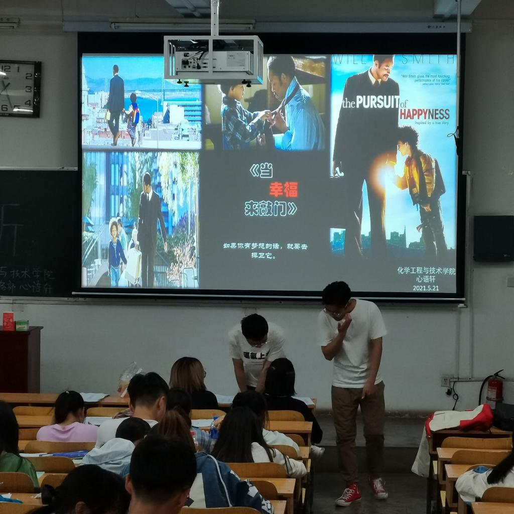 “没有一颗心,会因为追求梦想而受到伤害。”为引导同学们积极面对困难与挫折,增强努力奋斗的意识。我院心理辅导站心语轩于2021年5月21日晚19:30在10101H播放了本学期第三场心理电影——《当幸福来敲门》。