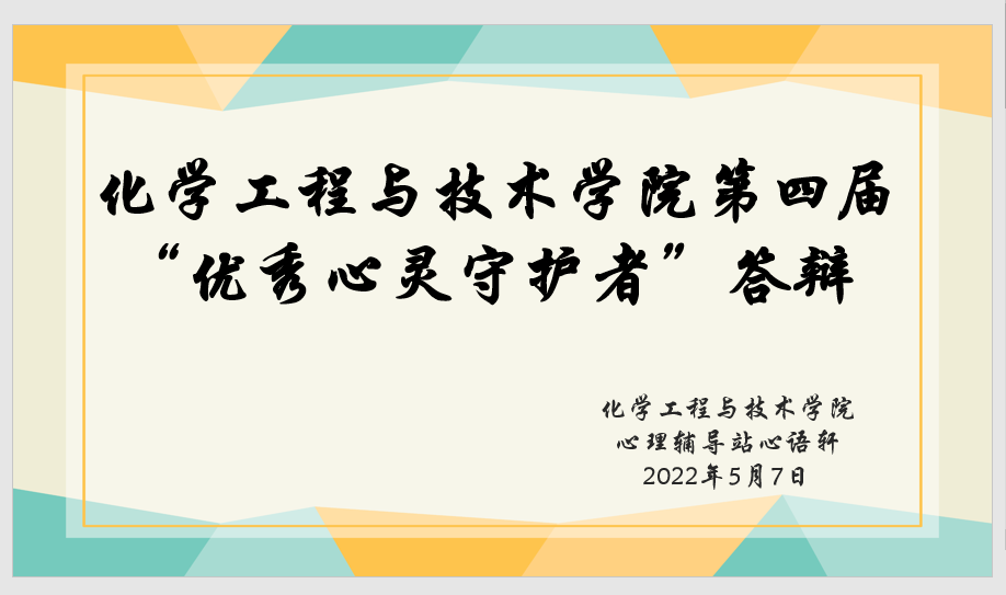 为促进我院心理健康工作的发展,加强心理委员的相互交流与学习,我院心理辅导站心语轩于5月7日下午3点以腾讯会议的方式举办了“第四届优秀心灵守护者”线上评选答辩活动。我院心理健康负责老师郭禹老师,学院学生干部作为评委出席了本次活动。