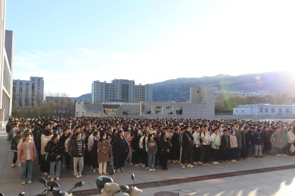 下午4点,消防应急警报响起,全体同学按照疏散路线迅速有序地分批从宿舍楼撤离,前往疏散集中地点——科学楼C座门前广场,集合完毕各班负责人清点人数。
