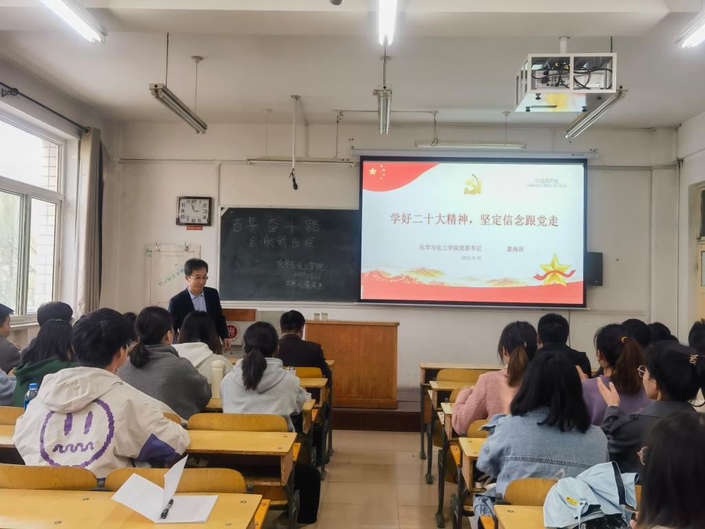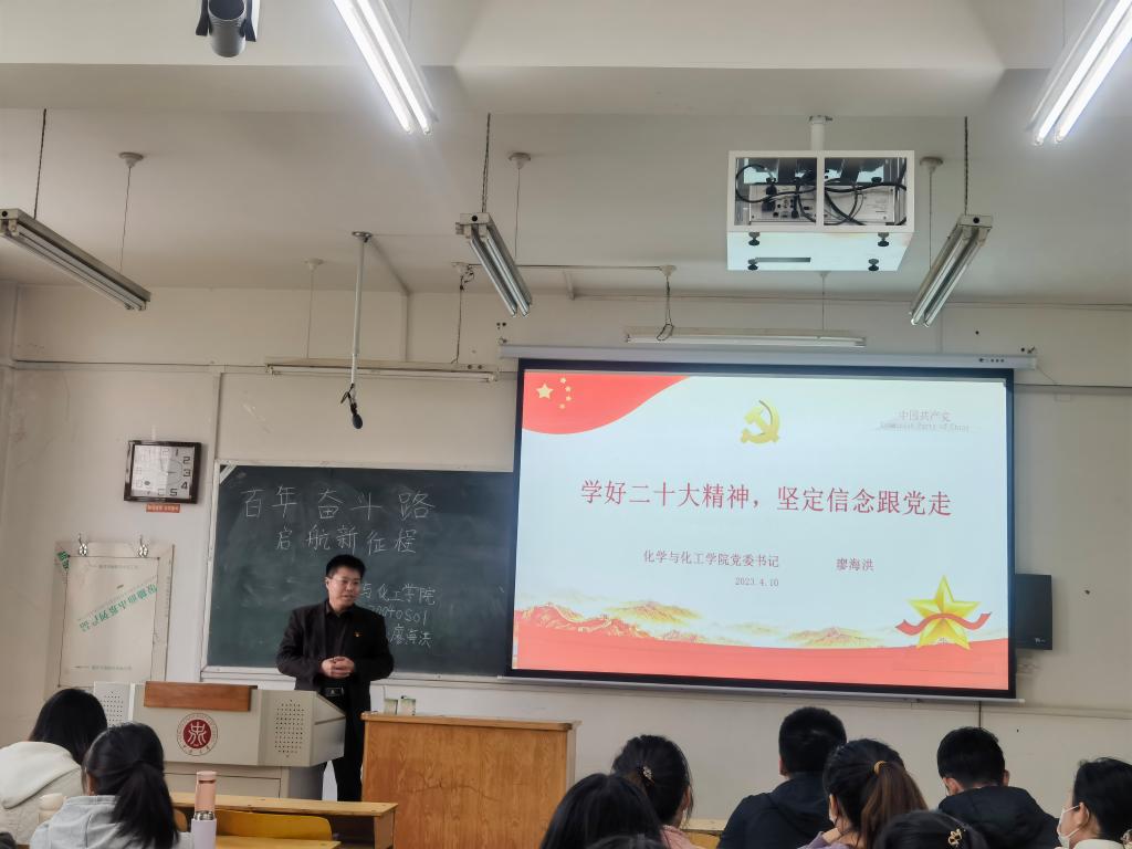 为学习贯彻党的二十大精神,全面把握新时代十年伟大变革的深刻内涵和重大意义,进一步鼓舞和激励全党全国各族人民坚定历史自信,增强历史主动性,为全面建设社会主义现代化国家、全面推进中华民族伟大复兴而团结奋斗。20040S01班邀请我院党委书记廖海洪老师于2023年4月10日在10306Z召开“百年奋斗路,启航新征程”的主题班会,为我们解读二十大的内在精神以及作为学生的我们应该具有的精神,现场多位老师莅临。