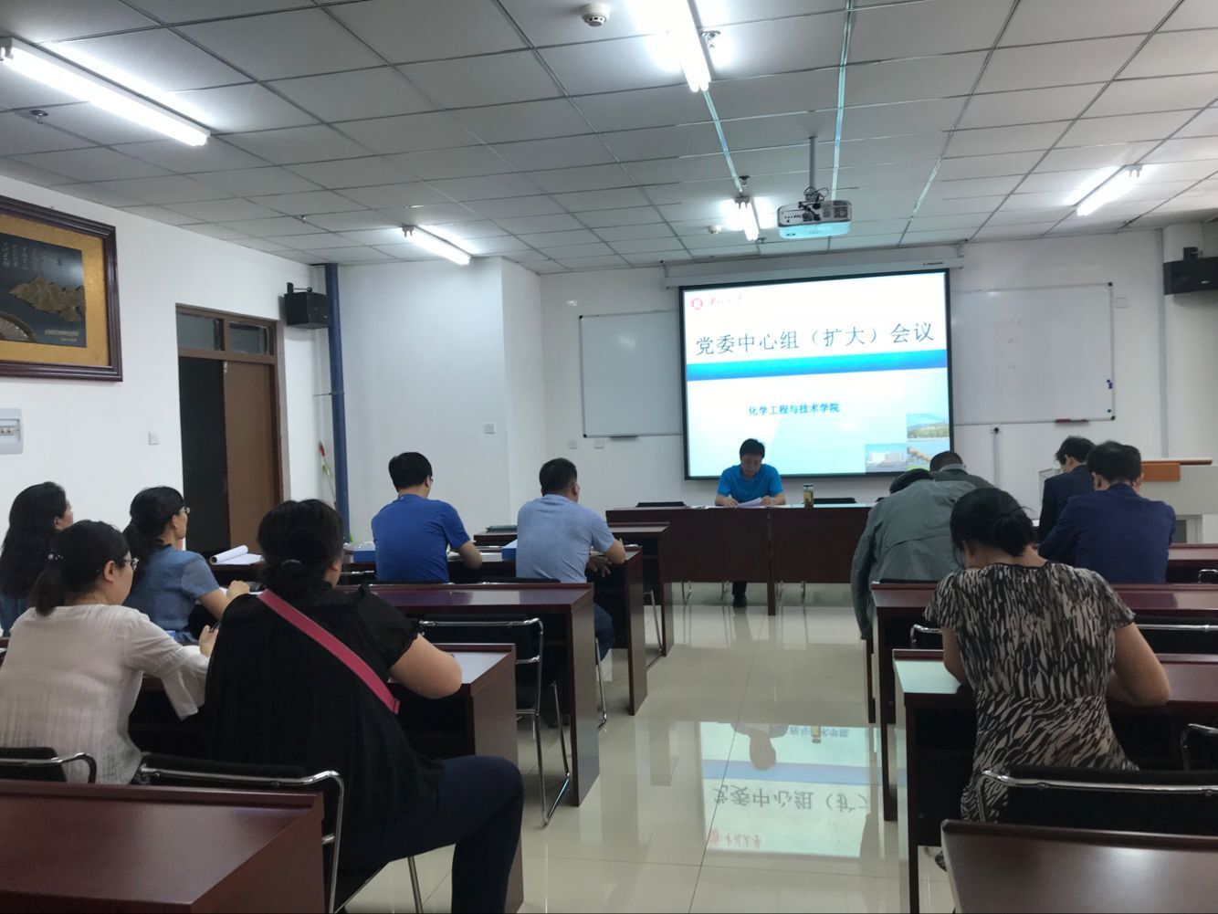 化学工程与技术学院于6月4日上午在科学楼206召开院党委中心组(扩大)会议,会议由院党委书记廖海洪主持,全体院党委委员及党支部书记参加此次会议。