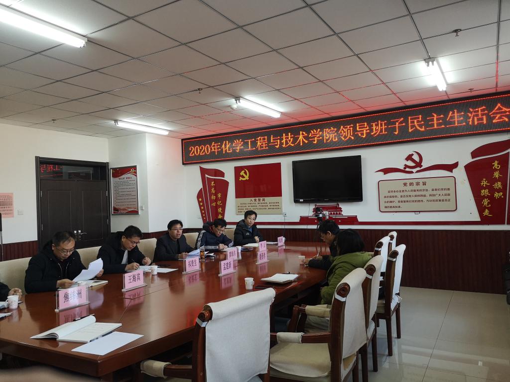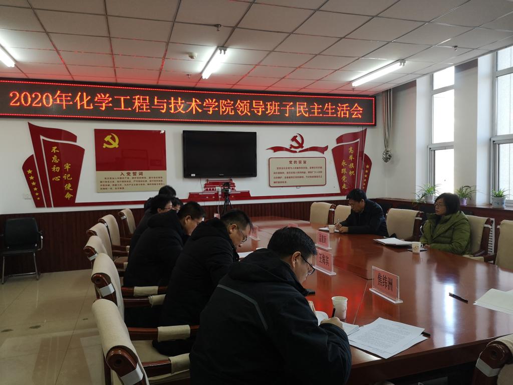 根据校党委《关于召开2020年度中层党员领导干部民主生活会的通知》的要求,2021年1月16日上午,化学工程与技术学院在科学楼C座705会议室召开2020年度院领导班子民主生活会,会议由院党委书记廖海洪主持,副校长潘晋孝和校纪委委员、审计处处长孟建新莅临指导。