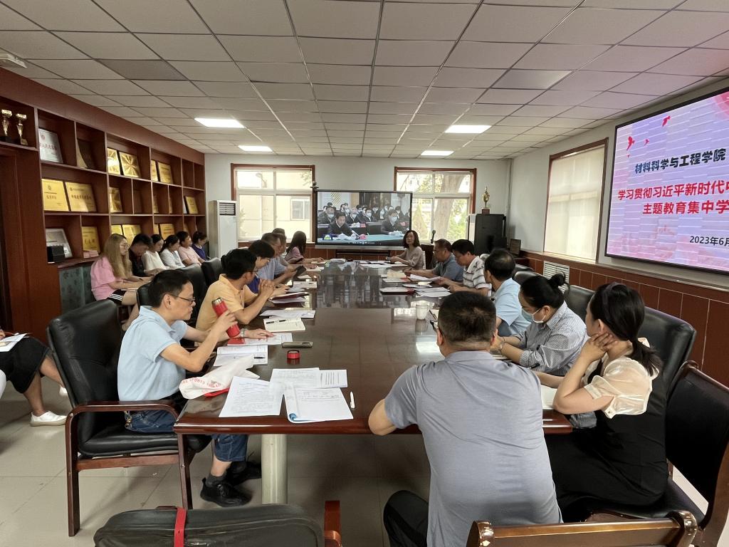 2023年6月26日,美高梅mgm1888公司官网联合材料科学与工程学院以“联组共学”方式开展学习贯彻习近平新时代中国特色社会主义思想主题教育第三次集中学习。会议由院党委书记廖海洪主持,党委理论学习中心组全体成员、科级干部和全体支部书记参加学习并作交流发言。