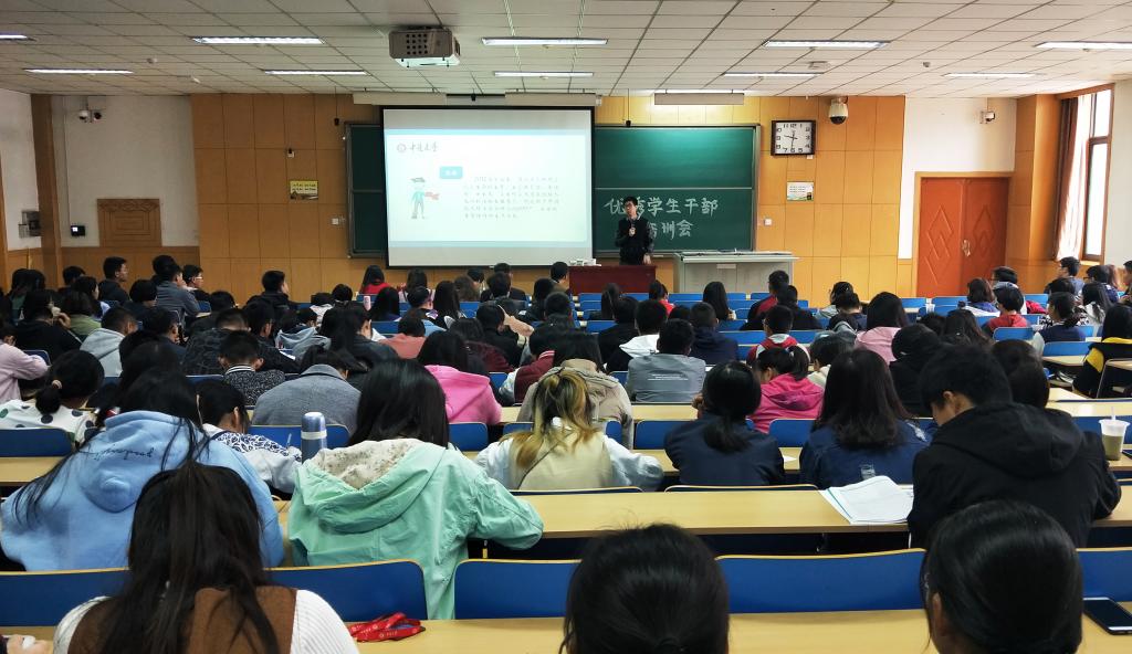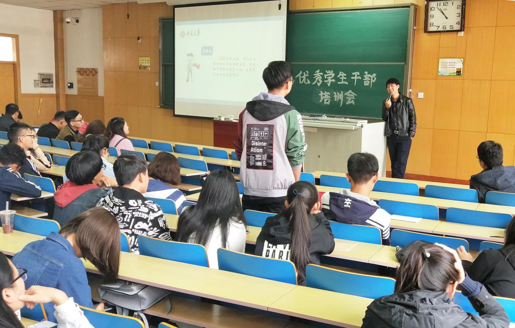 2017年10月15日上午,2012级毕业学长张潮、侯海旭回访母校,在11409做了“优秀干部培训会”的报告。出席本次培训会的嘉宾有院团委副书记叶增民老师,参与人员有学生会主席团众人和学生会各部门人员以及各班班委。