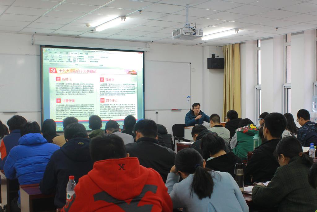 接下来,由化学工程与技术学院党委副书记李云向学生干部完整解读十九大工作报告。解读伊始,李云副书记结合工匠精神和习近平山西重要讲话精神从十九大工作报告中的四个“新”、四个自信以乃十九大报告的十大关键词、四十个新提法新举措详细地解读了十九大精神的重要内容。李副书记强调:不忘初心、牢记使命,这是我们学生干部应该也是必须要做的,实现中华民族伟大复兴的中国梦更是我们每个人的使命。