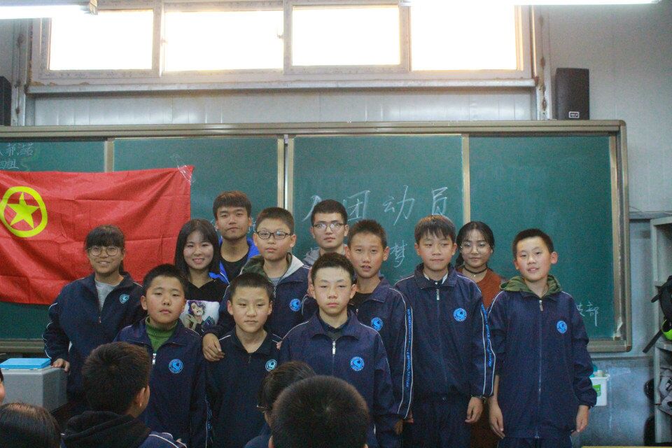 2018年10月30日中午12点30分,18040s01团支部乘坐公交车到达太原市第三实验中学。团支书向初一同学介绍了团情,并动员初一同学积极入团。之后,该支部与初一同学一同前往操场进行了快速记忆团歌、绑腿跑比赛以及夹气球游戏。最后,支部成员为大家颁发了书签、笔等奖品,并合影留念。