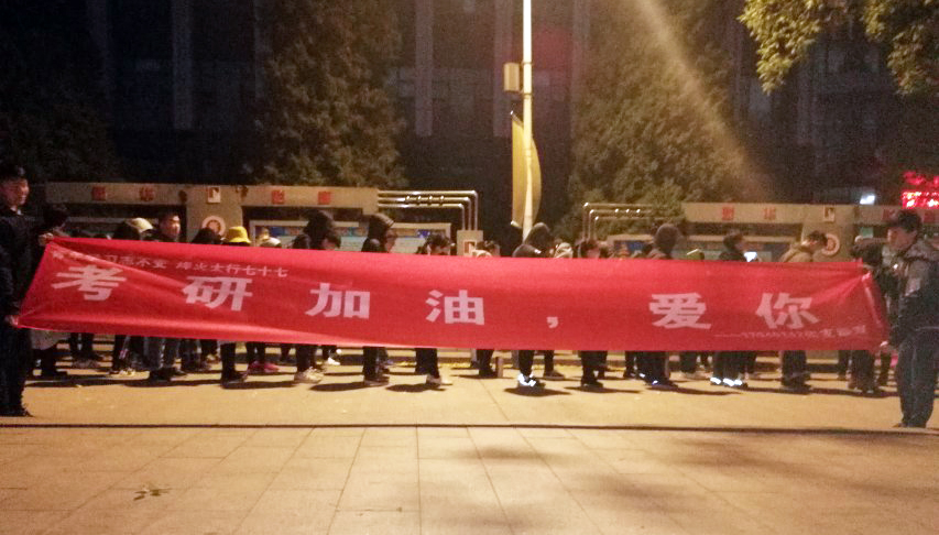 当日中午十二点142团支部来到龙山餐厅门口,过往同学在条幅之上有的写下了对考研的看法,有的写对考研同学的鼓励,还有的写出了自己的学习方法以及对学校的祝福等等,此次活动参加人数高达500人,142支部也进行挑选将前期准备的小礼物送给优秀签字活动中的同学。此活动比预期效果更好。