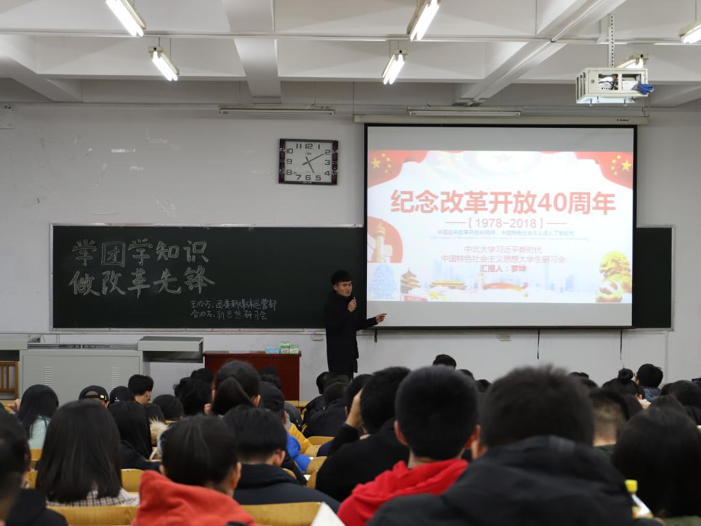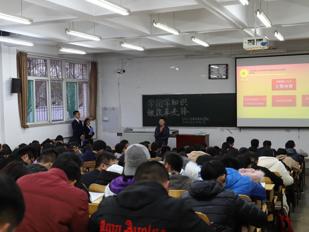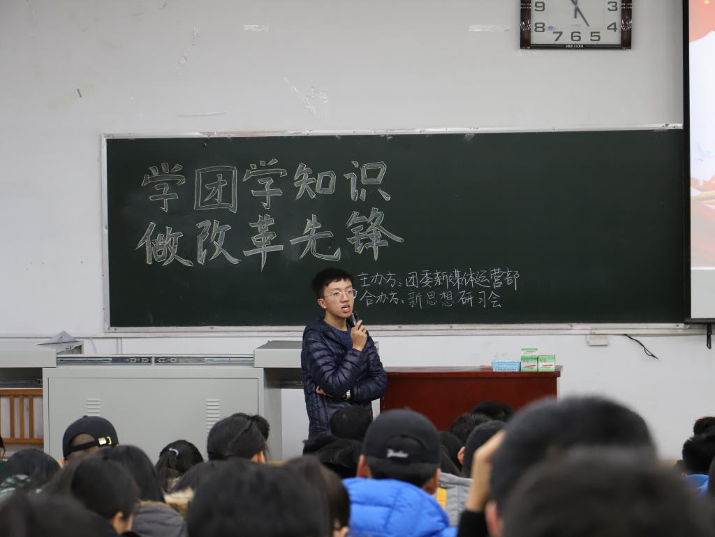 2018年11月20日下午四点半,由化学工程与技术学院团委新媒体运营部联合中北大学习近平新时代中国特色社会主义思想大学生研习会(以下简称研习会)共同举办的"学团学知识,做改革先锋"宣讲会于10101H准时开讲。