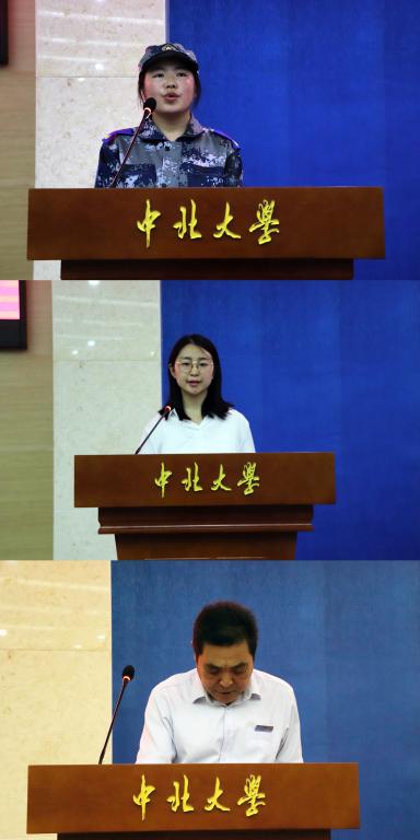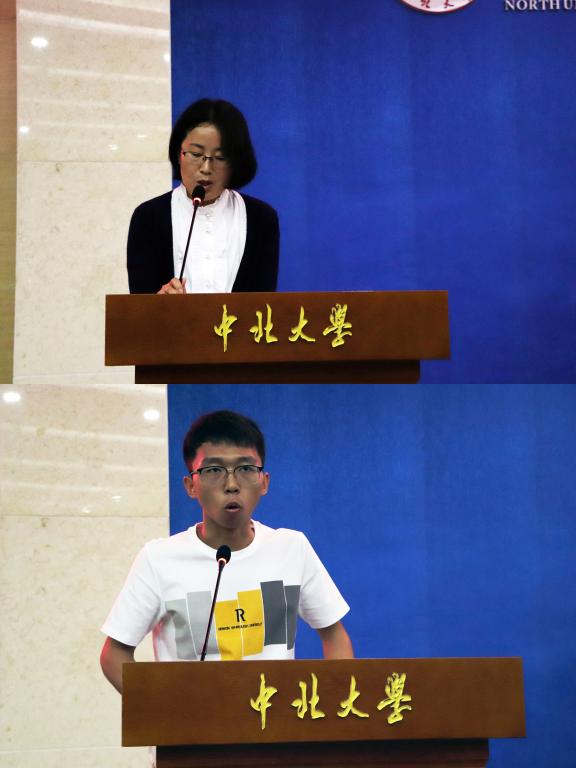 紧接着,在校生代表王腾乐同学建议新生制定目标,做出规划,提升自身能力,过充实多彩的大学生活。本科新生代表崔梅同学回望过去,展望未来,呼吁同学们努力奋斗,牢记“致知于行”的校训,不负青春,不负自己。研究生新生代表张美琳同学分享了自身经历,鼓励新生积极探索,提高自主创新的能力,以积极心态面对困难。物业保洁代表王玉生表示物业会致力于为大家提供良好的生活环境,同学们也应该树立高尚的思想品德,扎实专业知识,成为创新型社会型人才。