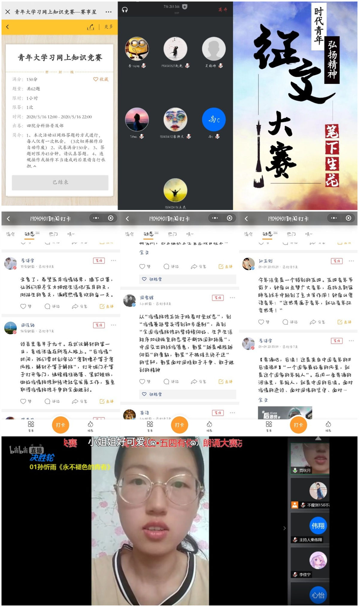 在疫情“外防输入,内防反弹”特殊时期,结合疫情防控和青年特点,为展现新时代团员青年的精神风貌,用青春共筑防疫长城。5月11日至14日期间举办了“时代青年,弘扬精神”五四主题征文比赛,选手郭杰群以一首《浣溪沙·青年奋强》荣获一等奖,竞展青春风采。5月15日举办了“青春战疫,五四有你”主题朗诵比赛,参赛者用声音传递爱与祝福,在语句中表达爱与信念。同日组织进行了团支书和优秀团员宣讲会,宣讲人带领参会人员重观抗疫之路,感防疫全国一盘棋,念总书记殷殷希望,鼓舞团员更加奋发进取。5月16日举办了“青年大学习知识竞赛”线上答题活动,我院学生积极参与,参赛人数过百。通过答题的方式回顾全民抗疫的各个进程,引导学生切实把习近平总书记向广大青年提出的重要要求内化于心、外化于行,进一步明确新时代青年的责任与担当。