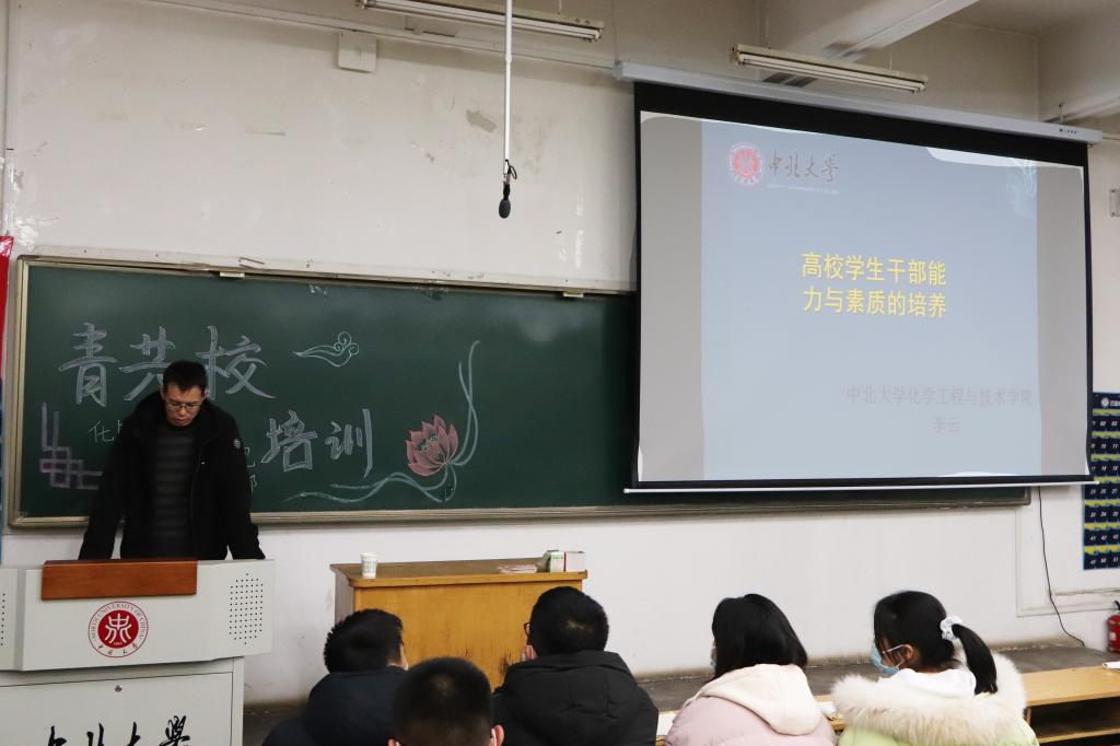 学院党委副书记李云就“高校学生干部能力与素质的培养”一题,向同学们介绍了学生组织的发展历史、学生干部的定位和原则要求。他强调,学生干部要落点在学生上,要认清自己的职责是为同学们服务。