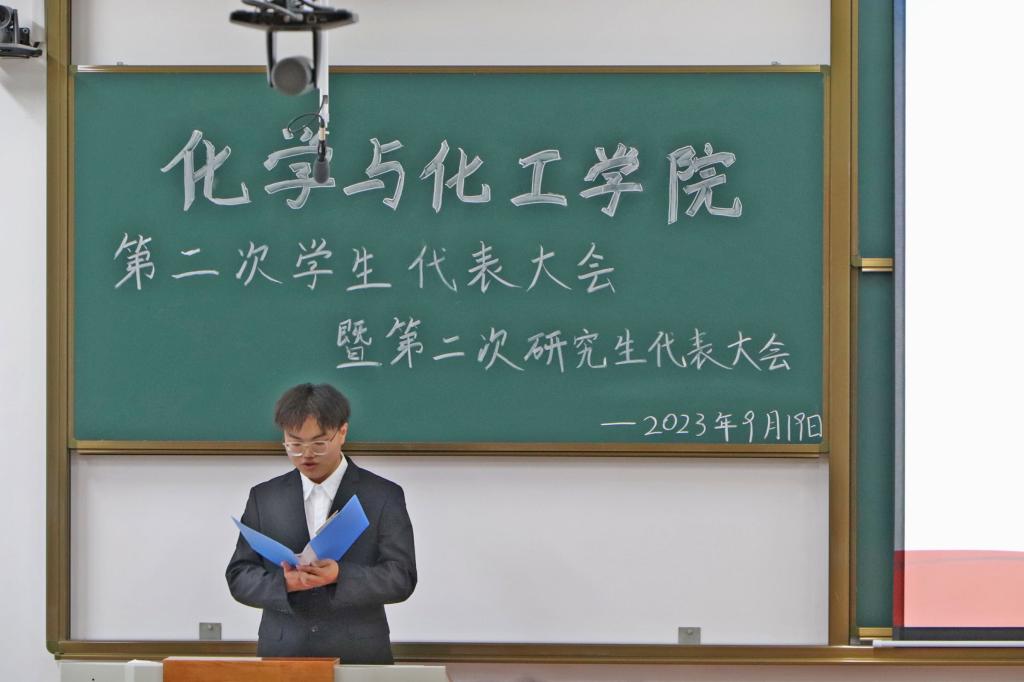 团委书记李艳宣读了《关于化学化工学院召开第三十次团代会暨学代会请示的批复》,对学院团学工作和过去一年来取得的成绩表示高度的肯定,希望新一届团学干部能够继续坚定理想信念,加强自身锤炼,继续开创化学化工学院团学工作新局面。