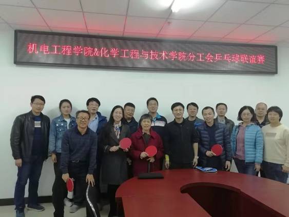 金色十月,红叶满园。为促进学院间的交流,共建和谐校园,2019年10月31日下午,化学工程与技术学院与机电工程学院于科学楼A座814举办了乒乓球联谊活动。化工学院祁贵生院长和机电学院罗建国书记带队参加了本次联谊赛。