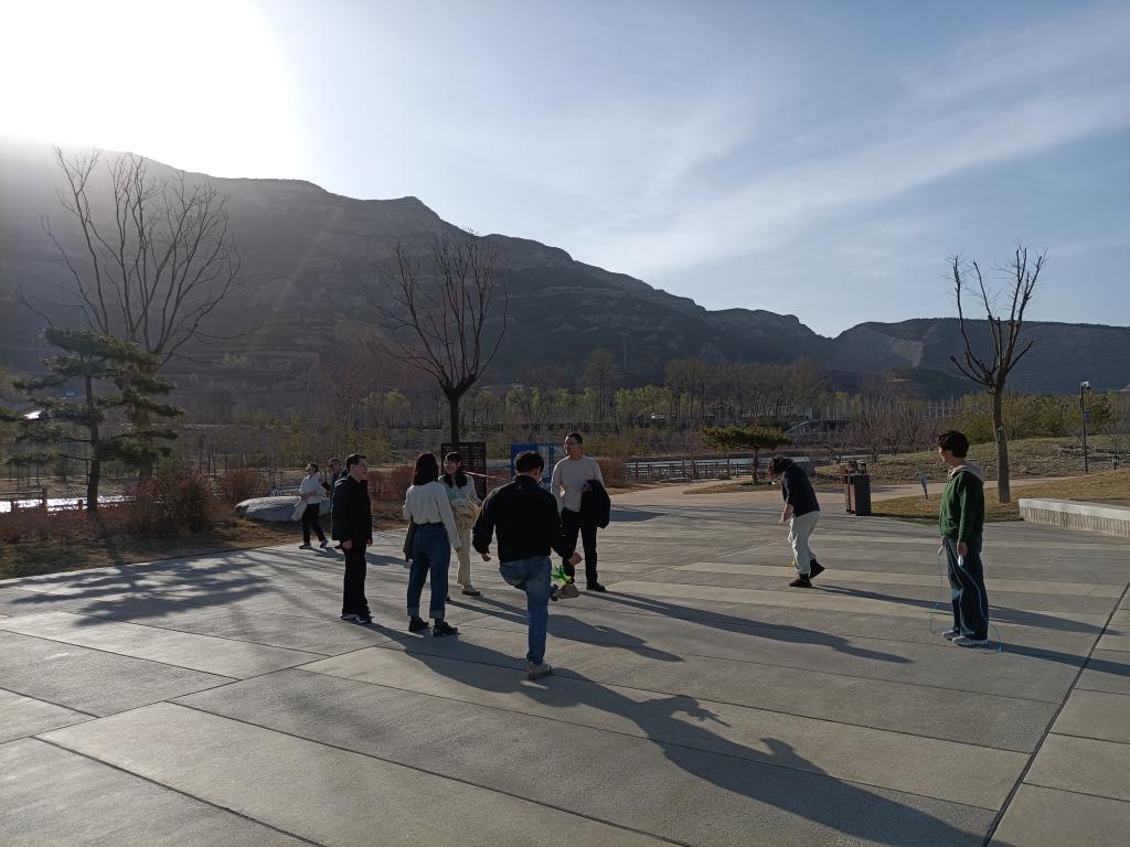 徒步过程中,老师们欢声笑语,热情洋溢,纷纷用相机拍下健步途中的美好。到达汾河四期后,教师自由活动,有踢毽子的,也有跳绳的,还有拍摄美景的,愉悦身心,放松心情。