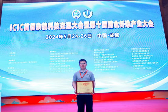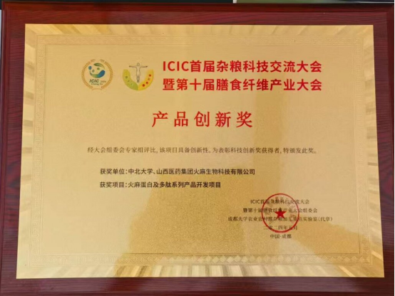 2024年5月24日-26日,ICIC首届杂粮科技大会暨第十届膳食纤维产业大会在成都隆重召开,我院教师李晓君与山西医药集团火麻生物科技有限公司合作的“火麻蛋白及多肽系列产品开发项目”荣获“产品创新奖”。