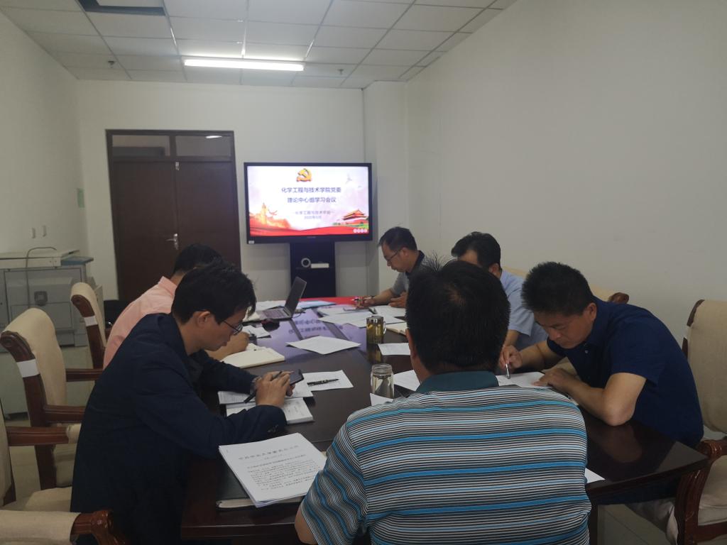 2020年5月29日9:00,化学工程与技术学院党委在科学楼714会议室召开理论中心组学习会,全体院领导、院党委委员参加了本次学习,会议由院党委书记廖海洪主持。