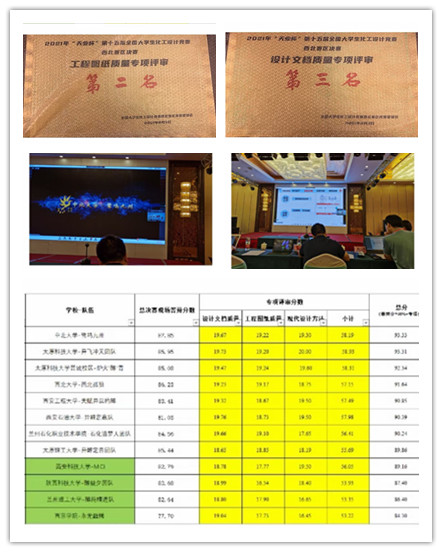 7月31日至8月4日,由中国化工学会、中国化工教育协会和教育部高等学校化工类专业教学指导委员会联合主办,石河子大学承办了2021年第十五届全国大学生化工设计竞赛西北赛区决赛。该赛事是目前全国高校化工专业级别最高、参赛队伍最多、影响力最大的比赛,并于2019年列入教育部大学生学科竞赛A类赛事。受新冠肺炎疫情影响,竞赛采用线上团队答辩与线下评审同时进行,西北赛区决赛共有6省区54所院校、55支代表队参赛(每个院校1支代表队,石河子大学2支)。中北大学化学工程与技术学院“鹭鸣九州”团队,一路过关斩将,以第一名的优异成绩获得第十五届全国大学生化工设计竞赛西北赛区特等奖,同时获得工程图纸专项第二名、设计文档专项第三名的好成绩,该团队将代表西北赛区参加全国总决赛,这是我校连续8年代表西北赛区晋级全国总决赛。