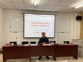 10月26日,化学工程与技术学院召开安全防疫工作部署会议,学院全体教职工参加此次会议,本次会议由院长祁贵生主持。