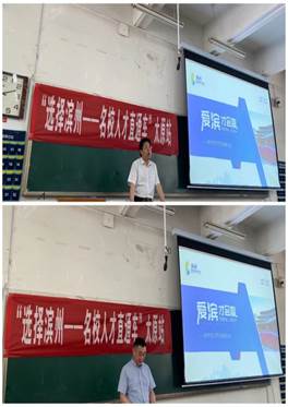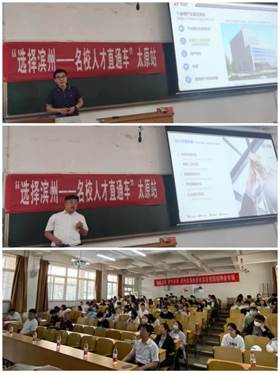 首先,廖书记代表学院对来访的领导和企业代表表示热烈欢迎,介绍了目前我院的就业情况,强调未就业的同学一定要珍惜此次机会,主动寻找契机,争取早日就业。之后,滨州市人社局党组成员、副局长颜波,结合宣传片为在座的同学详细介绍了滨州市发展与规划,重点介绍了现有的产业基础、科创实力和人才引进政策,让大家感受“爱滨才会赢”背后的温度和情怀。