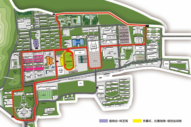 主田径场—主楼—10号楼—外北环—医院—二龙山脚下—德怀楼—二道门进入—体育学院—中央大道—回到田径场的东侧跑道(主席台对面看台下)