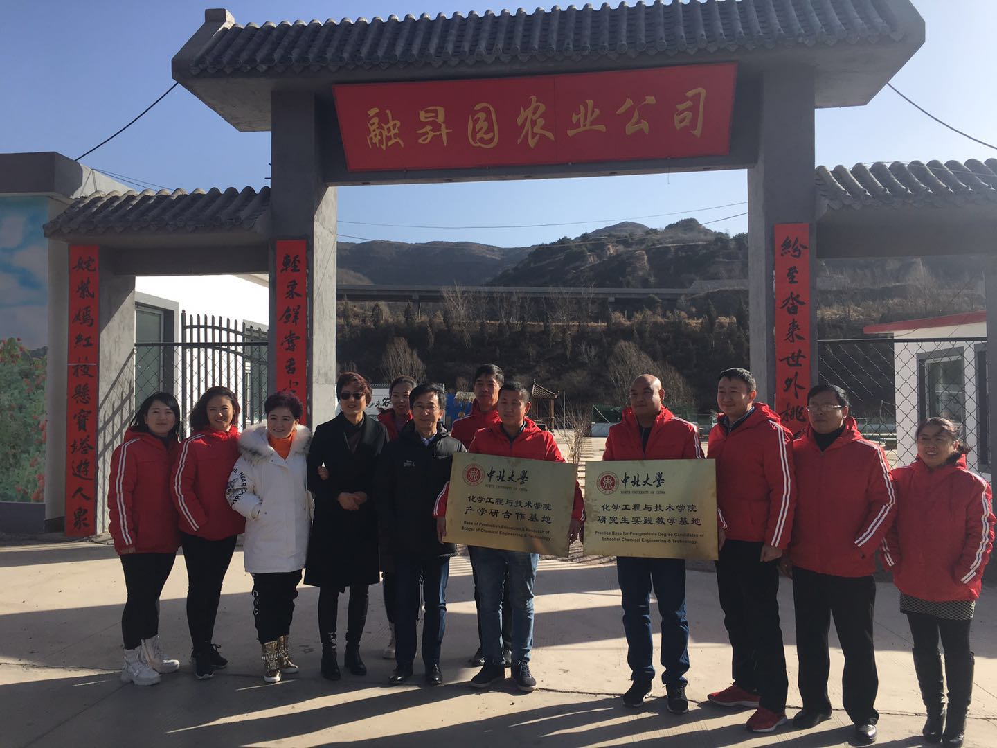2018年12月4日上午, “中北大学产学研合作基地”和“中北大学研究生实践教学基地”在山西融昇园生物科技有限公司正式挂牌。公司董事长李小梅带领企业相关负责人与我院副院长胡志勇、生物工程学科部副主任杨静出席了挂牌仪式。山西融昇园生物技术有限公司成立于2014年,经营范围包括树莓种植、树莓深加工、农产品开发等,是山西省高新技术企业之一。