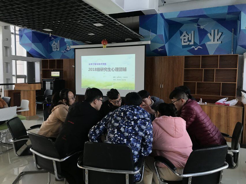 为帮助研究生提供良好的心理环境,缓解学习科研压力,营造班级良好氛围。于2018年11月29日下午,化学工程与技术学院组织2018级研究生进行心理团辅活动。参加此次活动的有马忠平老师、贾苗苗老师及2018级全体研究生。