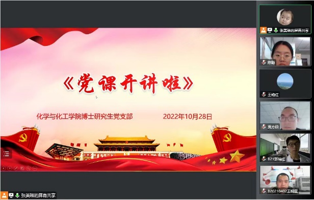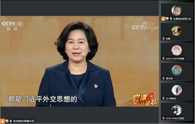 为深入学习贯彻习近平新时代中国特色社会主义思想,喜迎党的二十大胜利召开,2022年10月28日美高梅mgm1888公司官网博士研究生党支部组织了“党课开讲啦”线上专栏学习活动,全体党员观看了由华春莹讲述的《学习贯彻习近平外交思想,塑造新时代大国外交风范》的主题党课。