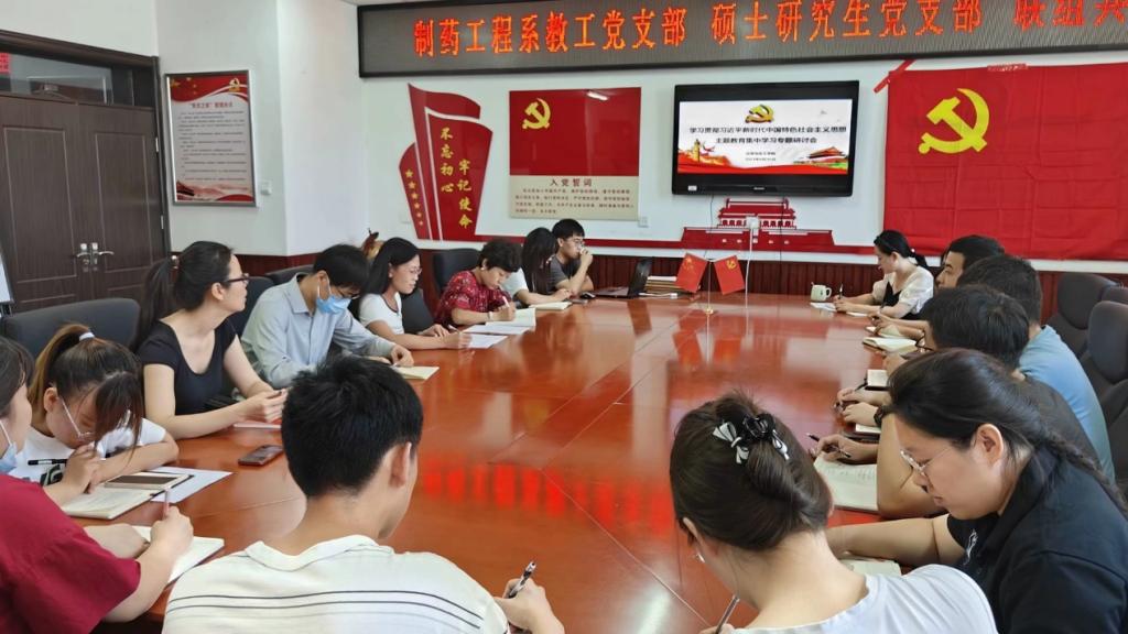 2023年6月30日上午10:00在科学楼七层党员之家,美高梅mgm1888公司官网硕士研究生党支部联合制药工程系教工党支部以“联组共学”的方式,就“学习贯彻习近平新时代中国特色社会主义思想”主题教育进行学习研讨。本次会议由制药工程系教工党支部书记王立敏老师主持,支部所有党员参会。
