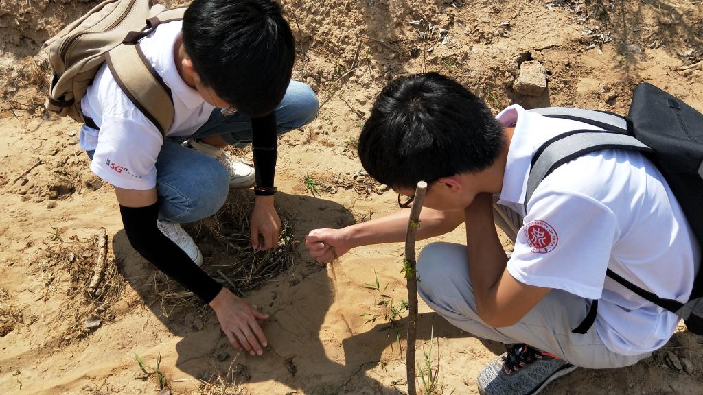 之后,王书记带着实践队队员们来到了北沙抚育区进行实地考察。数十年的艰苦奋斗,从荒漠到绿地,我们感叹小纪汗林场人员坚韧不拔的意志和不建绿洲不罢休的决心。他们将土壤运送覆盖到沙子上,种下固沙植被,用汗水浇灌绿洲的希望。通过王书记的讲述,我们了解到林业工人的艰辛。“足蒸暑土气,背灼炎天光。力尽不知热,但惜夏日长。”以前他们治沙时,带上鸡蛋、干粮和水一干就是一天,路途遥远,中午也不回去,就在沙地里休息。到现在才建造了这片林场,且近年来生态优化,沙土涵养了水源,只挖7~10米就可以见到水。但是,目前的治沙工作还存在一些问题,因为现在种植的多为樟子松,而樟子松油性大,容易发生火灾,所以需要研究各方面都适应沙漠的植被。
