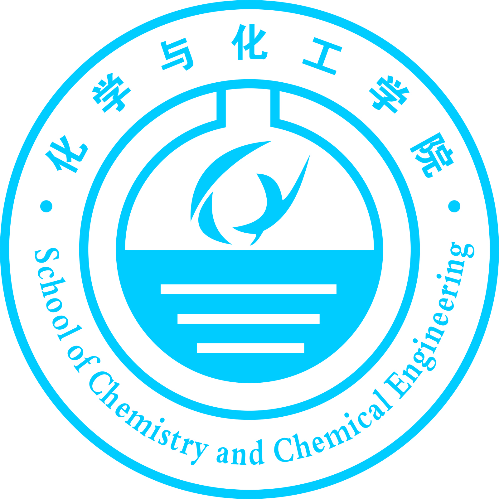 3.院徽中间是化学器材里化工反应釜的抽象图形,反应釜底部的蓝色液体代表水,里面的三条横线代表水中从上到下三种形态的水,三种水分别代表化学、化工、生物,寓意为:水为生命之源,化学孕育万物,两者相辅相成,为世界各方面的发展做出突出贡献。水的上方为水蒸气浮出水面抽象构成的“化”字,代表美高梅mgm1888公司官网。