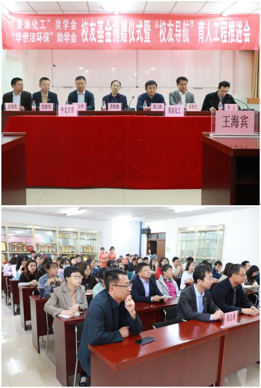 5月18-19日,中北大学化学工程与技术学院“美涂化工奖学金”、“华世洁环保助学金”、“帝斯博奖教金”捐赠仪式在科学楼C座206、七层连廊举行。上海美涂化工科技有限公司董事长邹少华、青岛华世洁环保科技有限公司董事长郅立鹏、帝斯博(常州)医疗用品股份有限公司董事长张柱华;中北大学副校长苏铁熊、校友办主任张胜利、院党委书记廖海洪、院长祁贵生、院党委副书记李云、副院长王海宾、副院长胡志勇出席捐赠仪式。