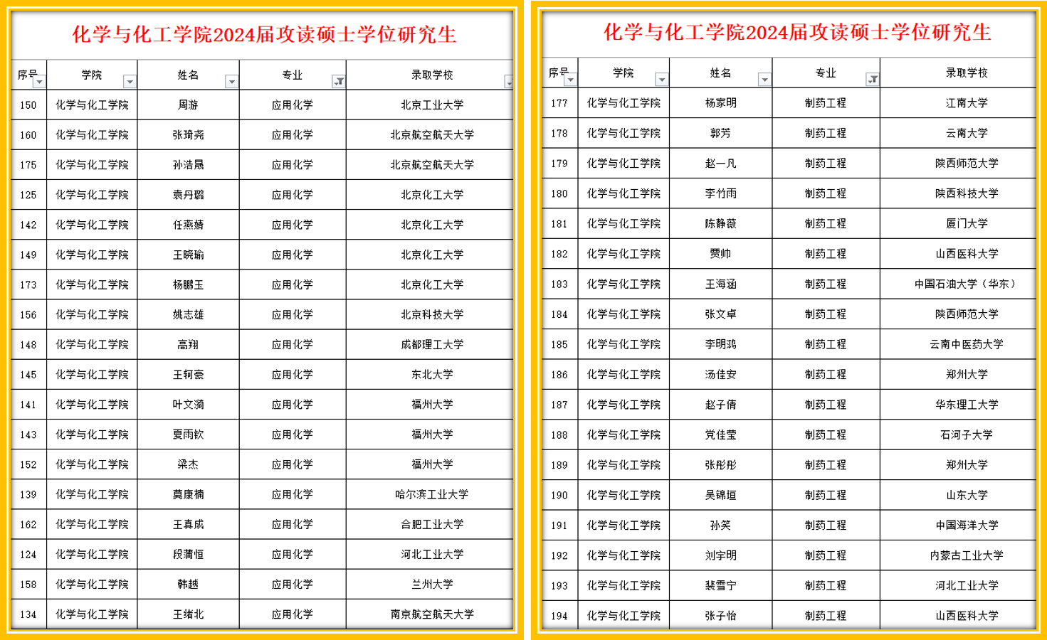 美高梅mgm1888公司官网2024届本科毕业生乘风破浪,获得可喜佳绩。2024届毕业学生488人,考研上岸共计196人,其中保研或直博24人,考研上岸172人。整体升学率40.16%,保研率4.92%。其中化学工程与工艺专业20040S01班升学率为83.33%、应用化学专业20080342班升学率为66.67%,能源化工专业20040441班升学率为62.86%,再创学院升学历史新高。